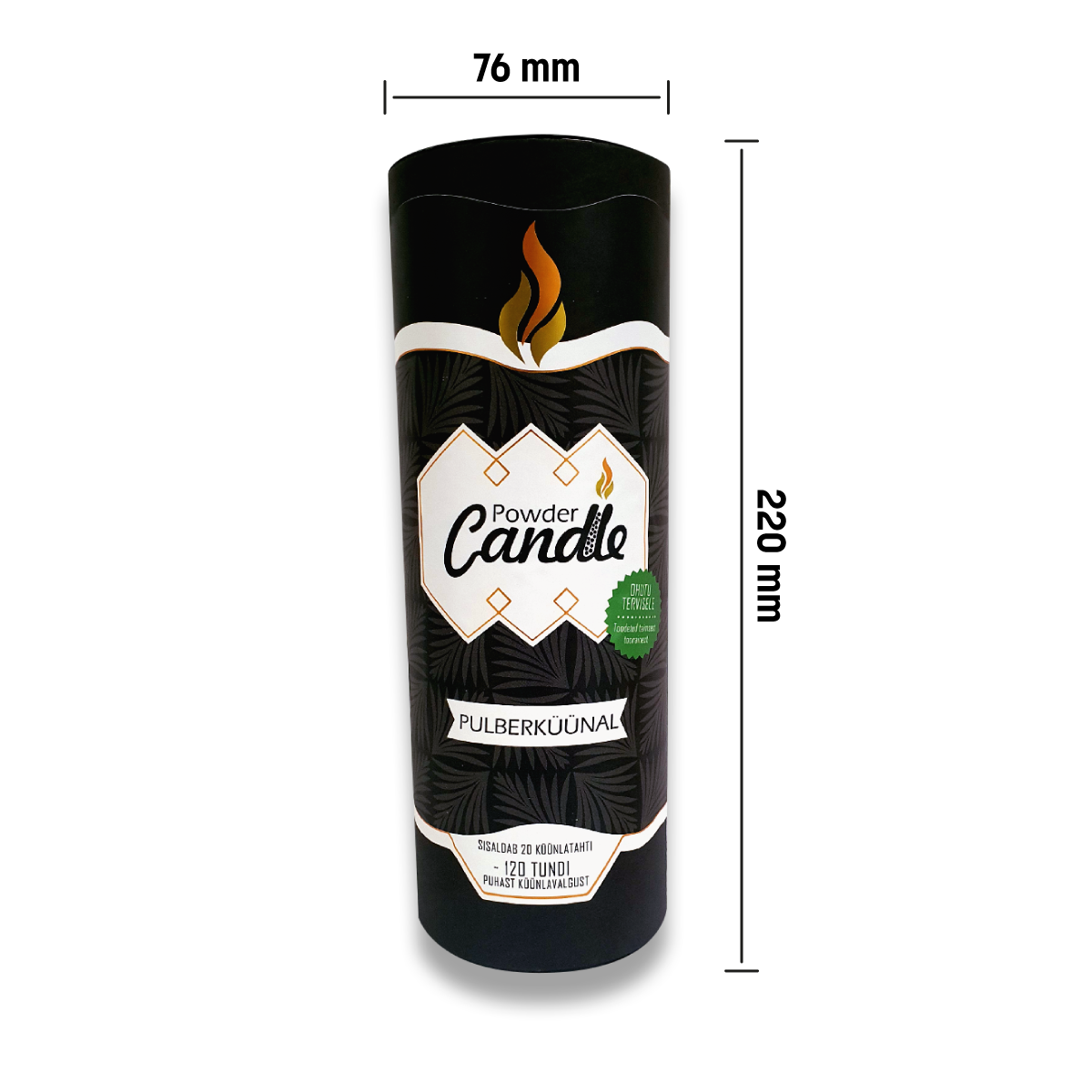 HOW TO USE THE POWDER CANDLEREAD MOREThe powder candle is clean and 100% natural. For the powder candle, you can use your favorite container, which is at least 8 cm wide and made of non-flammable material.